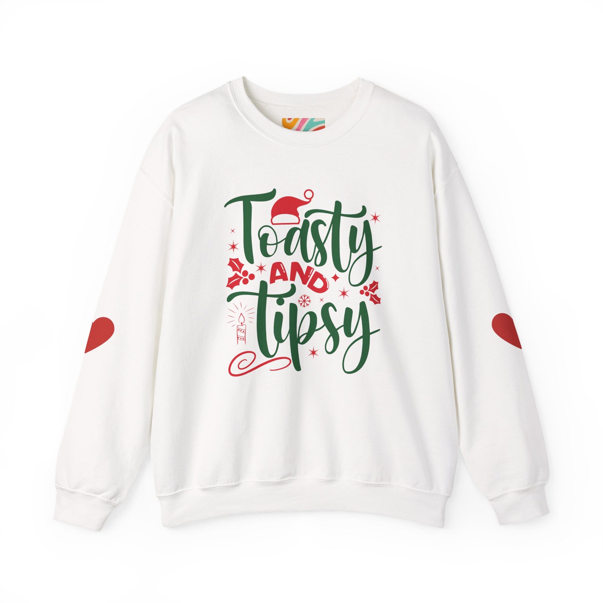 The playful red-and-green design reads âToasty and Tipsyâ â the perfect mood for fireside nights, cookie swaps, or pretending the family drama isnât happening.
