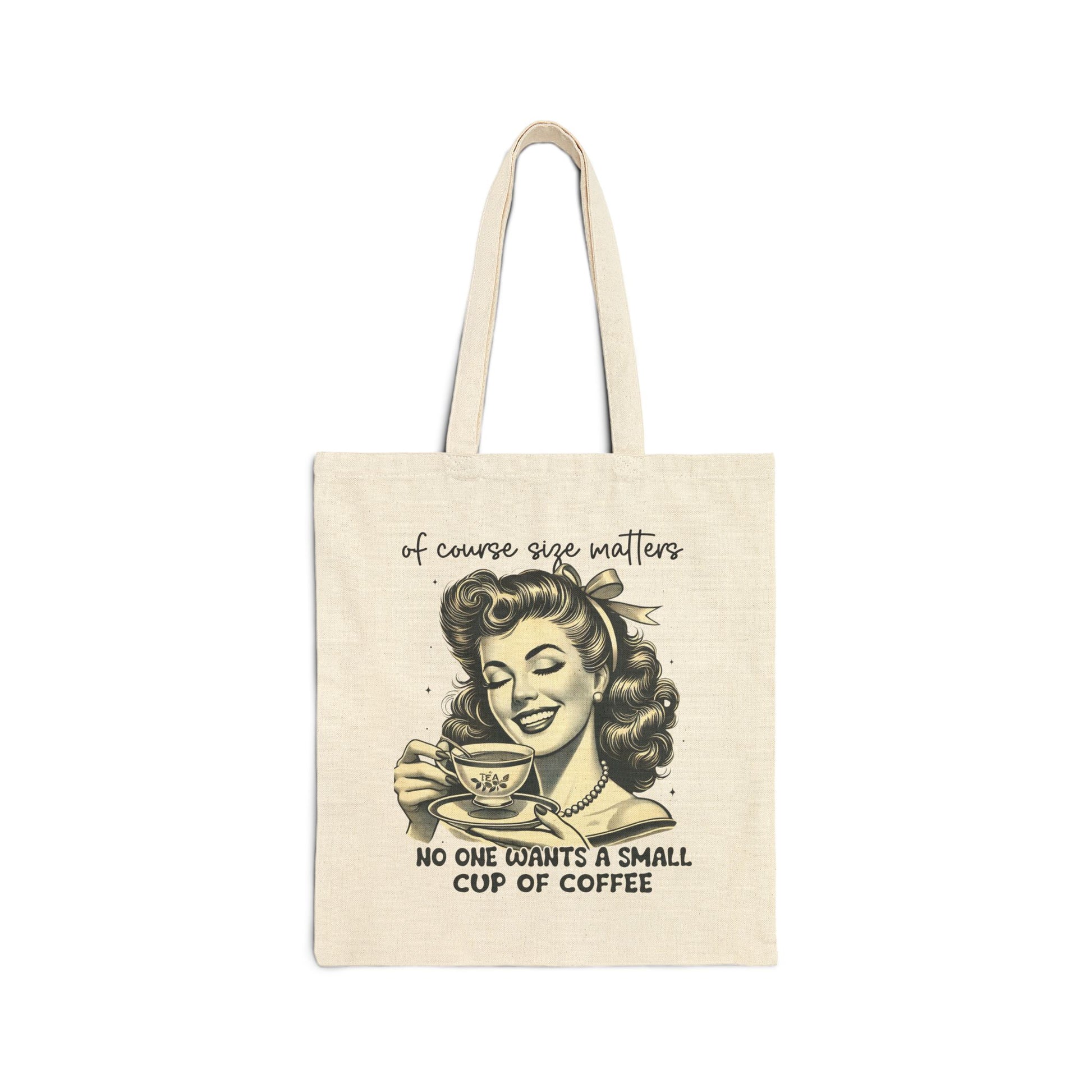 Some things are debatable… coffee size is not one of them. ☕😉This tote says what every caffeine queen already knows: “Of course size matters — no one wants a small cup of coffee.” Paired with a glamorous retro beauty sipping her not-so-small brew, it delivers charm, sass, and truth in one stylish swoop.Made from durable, lightweight fabric with a vibrant high-resolution print, this tote easily carries your essentials — from planners and snacks to books and, of course, your largest coffee order. Comfortable straps sit perfectly on your shoulder, and the bold artwork makes even a quick errand feel a little more fabulous. It’s practical enough for everyday use but cute enough to make a statement anywhere you go.Take it to the café, the office, the grocery store, or anywhere you need your personality to arrive before you do.