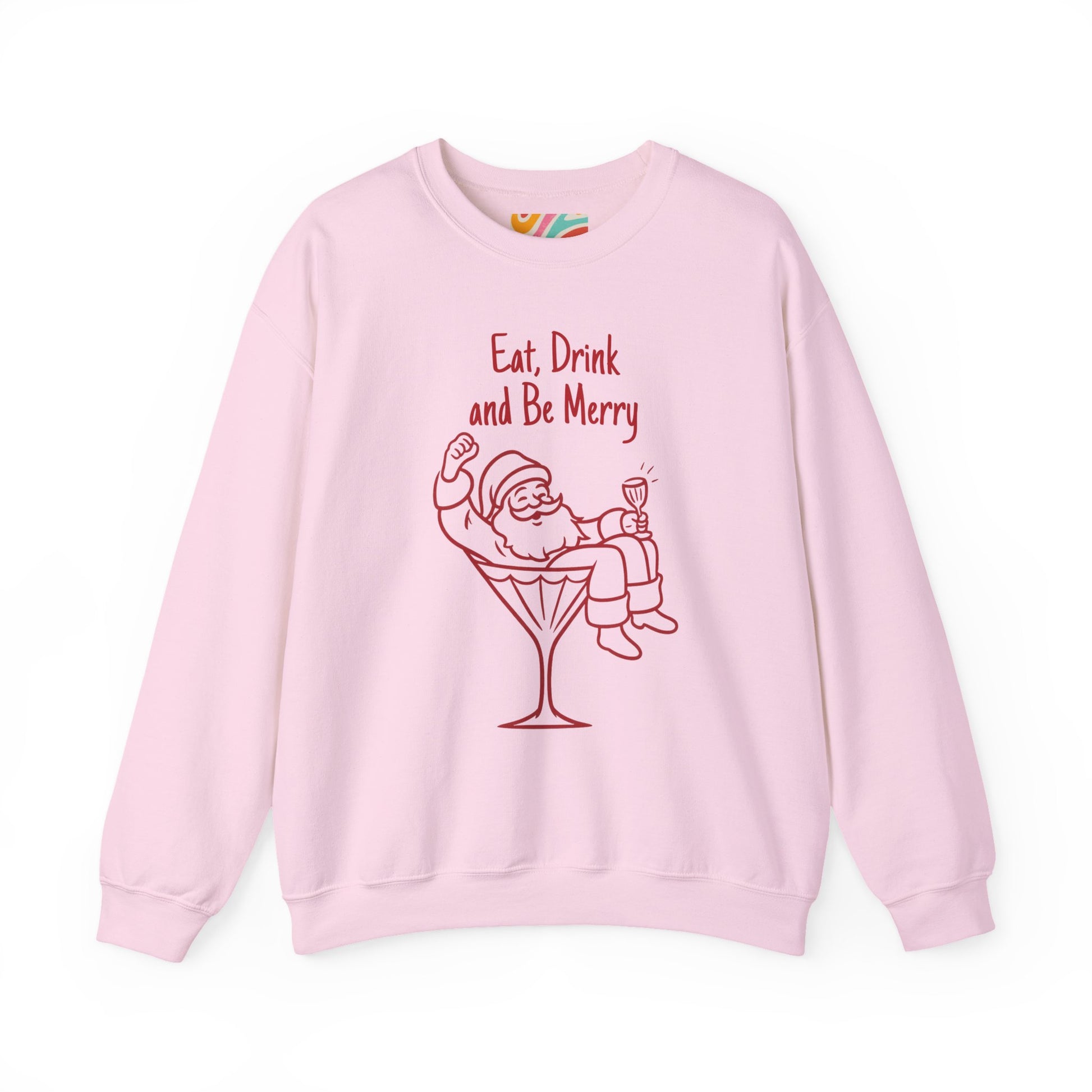 Eat, Drink and Be Merry Santa Cocktail Holiday Sweatshirt