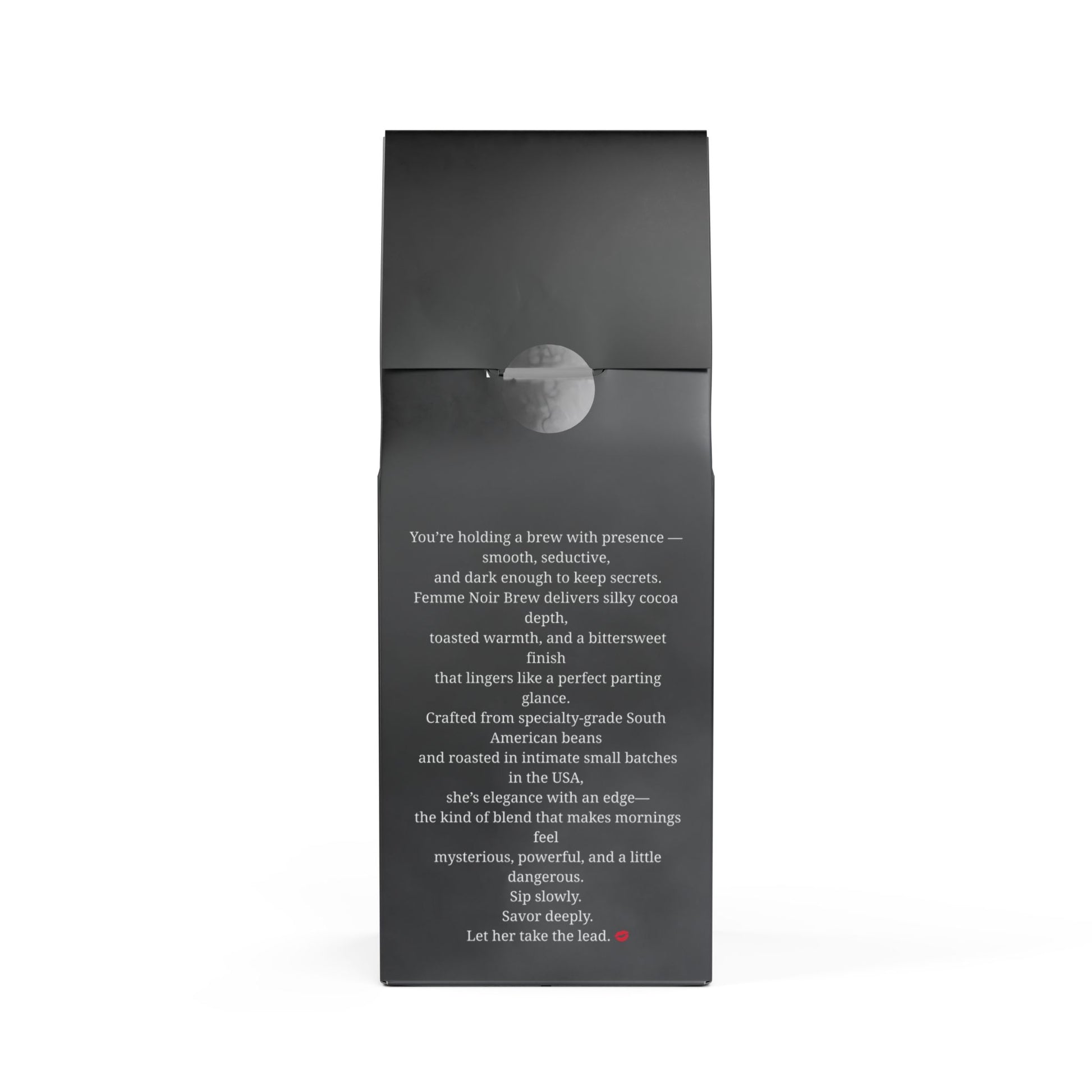 Femme Noir Brew serves dark French roast realness — silky chocolate, a whisper of toasted nuts, and that slow, smoldering finish that could convince anyone to make questionable choices.