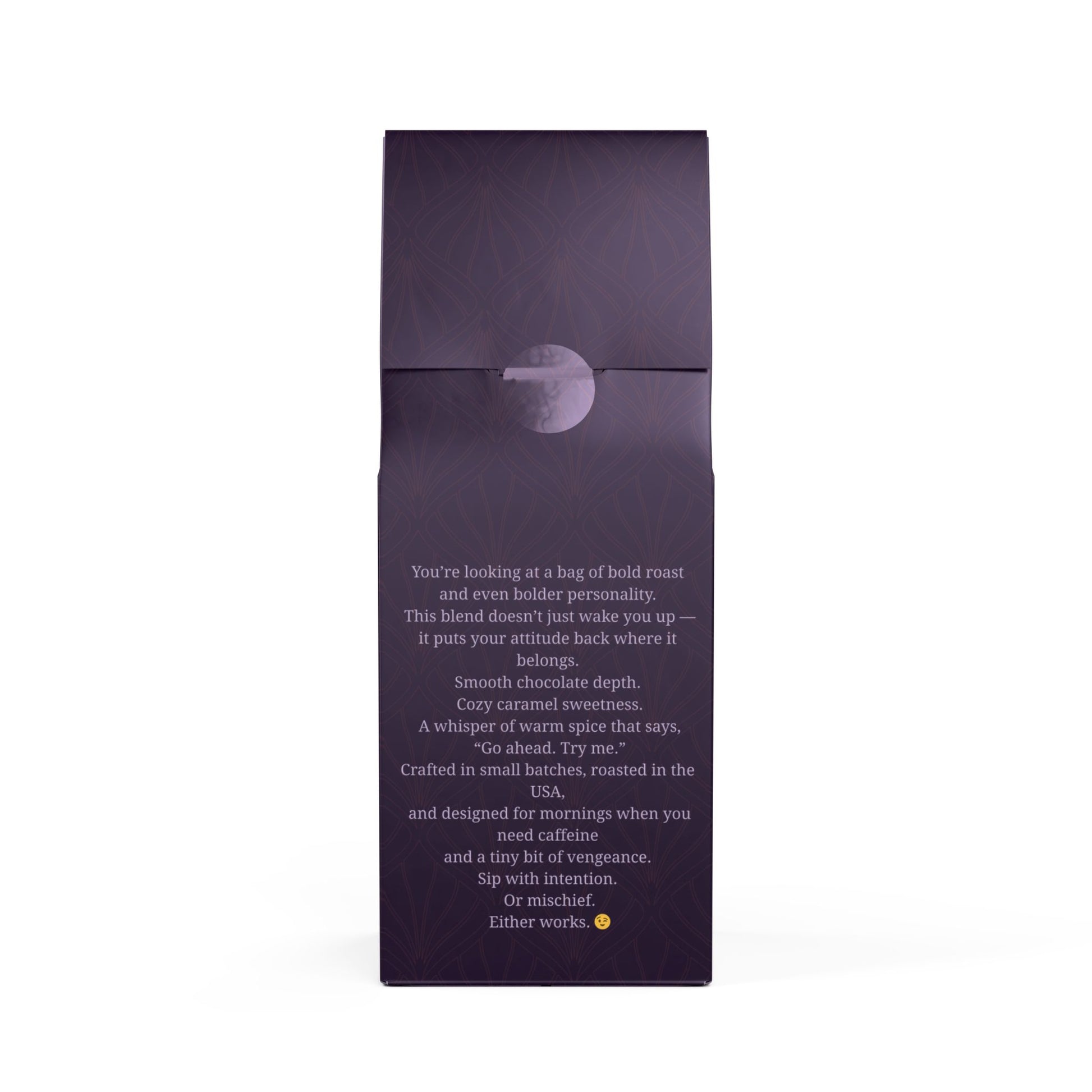 Pretty Little Nightmare Roast is your medium-dark little troublemaker — all deep body, baker’s chocolate attitude, and caramelized sugar that hits sweeter than any man who texts back too fast.