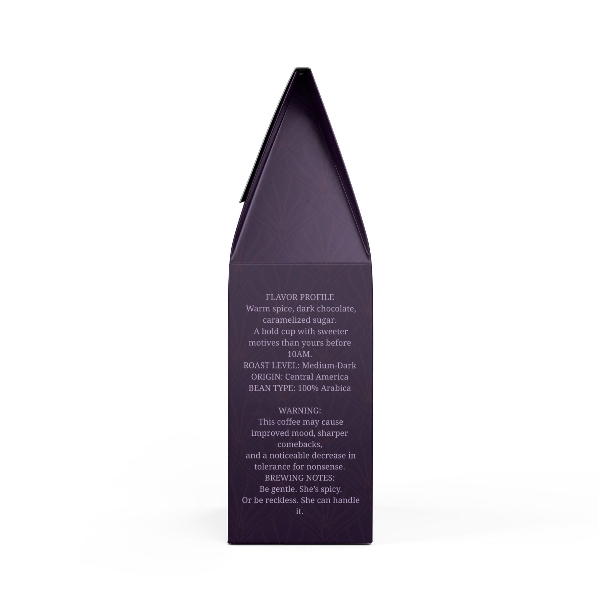 Crafted from specialty-grade Central American beans, this blend wraps you in warm spice, dark chocolate, and cozy caramel energy while still keeping its claws sharp. Whether you’re waking up for world domination or just trying to be a semi-functional adult, every sip feels like a hug… with teeth.