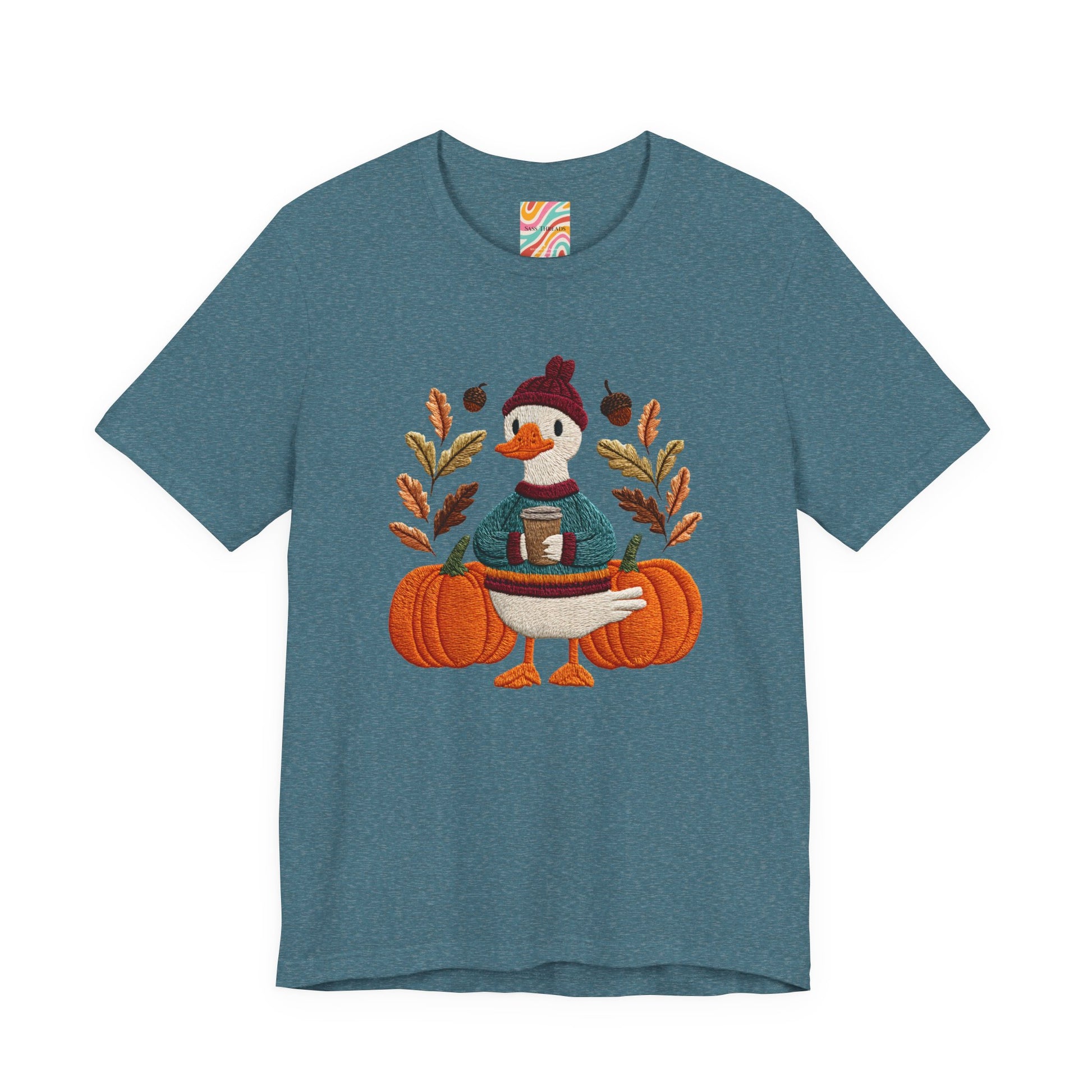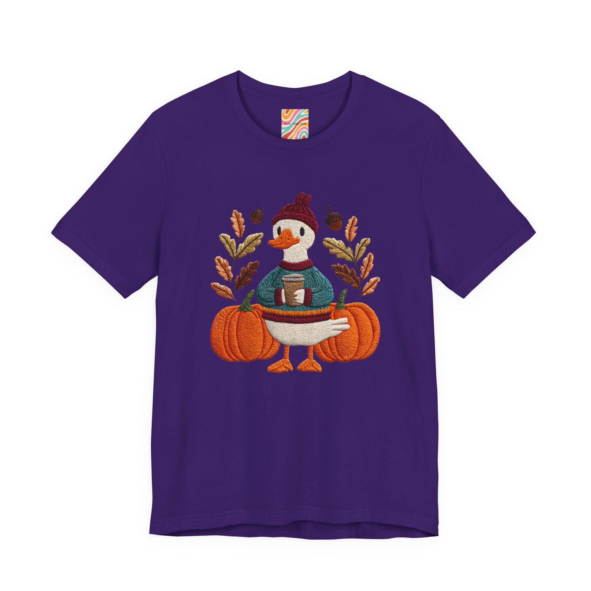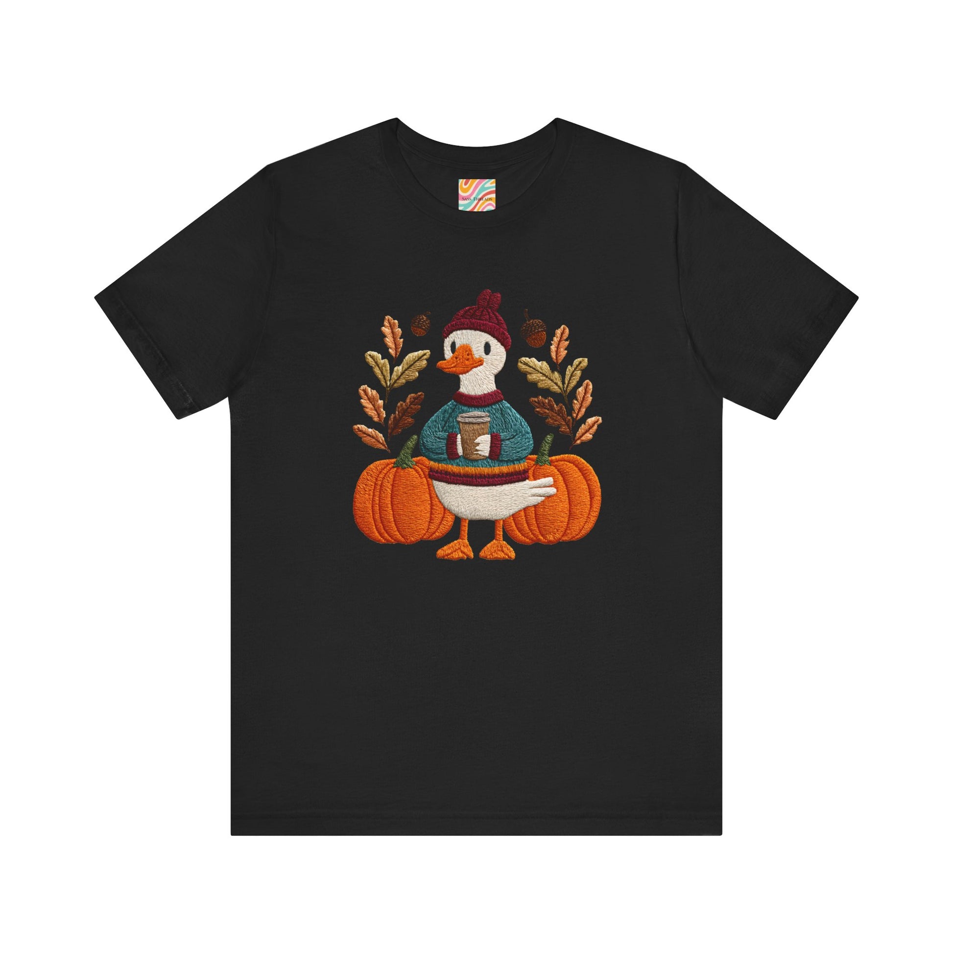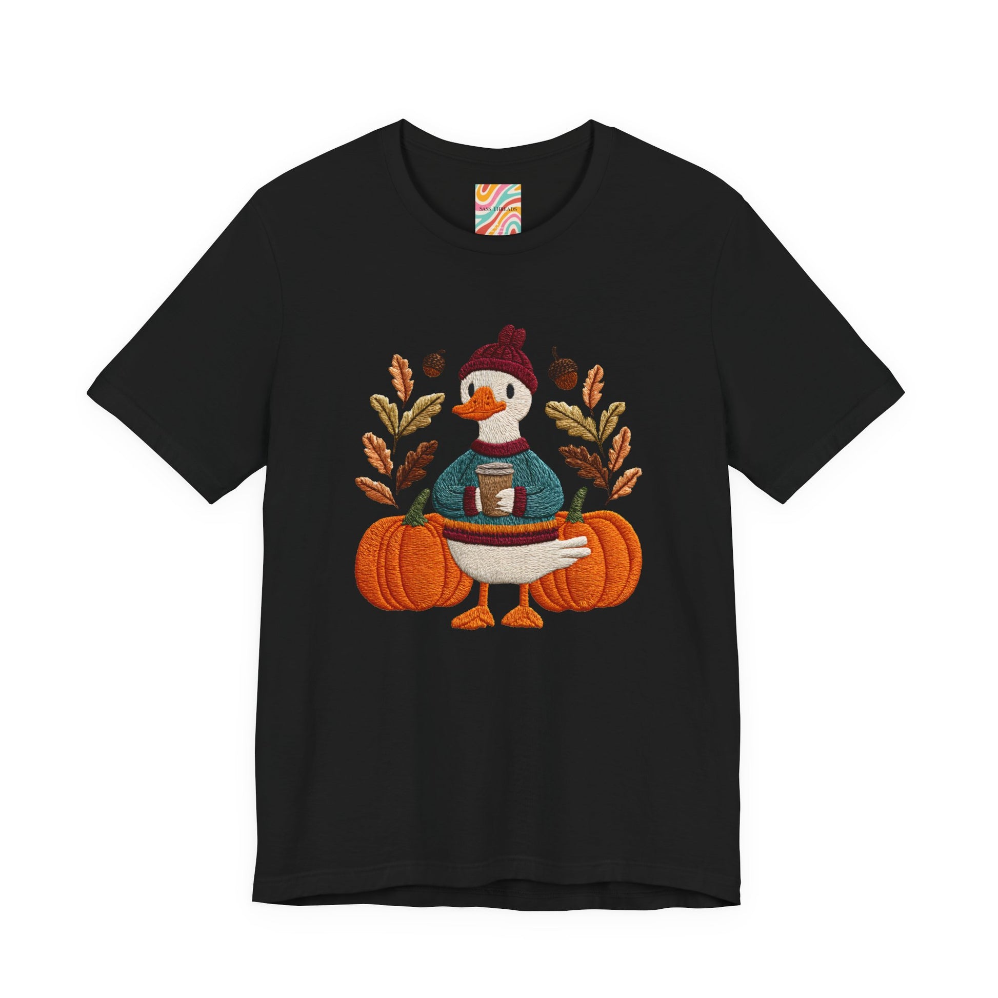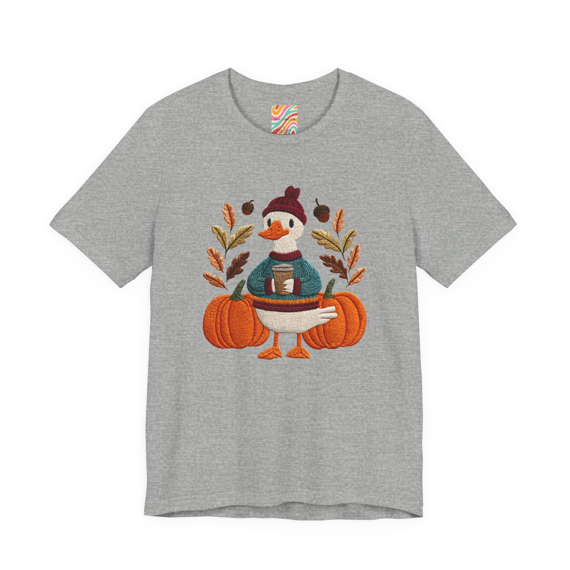 Embrace the cozy vibes of autumn with this stylish Unisex Jersey Short Sleeve Tee! Featuring an adorable design of a cheerful duck surrounded by pumpkins and warm foliage, this tee is perfect for those looking to add a playful touch to their fall wardrobe. Made from soft, breathable fabric, it’s ideal for layering or wearing on its own during casual outings or festive gatherings. Whether you're sipping pumpkin spice lattes or enjoying Halloween festivities, this tee makes a wonderful gift for friends and family who love the season. Great for casual get-togethers, Thanksgiving celebrations, or simply a day at home, it’s a must-have for anyone who enjoys a blend of comfort and style in their casual wear.