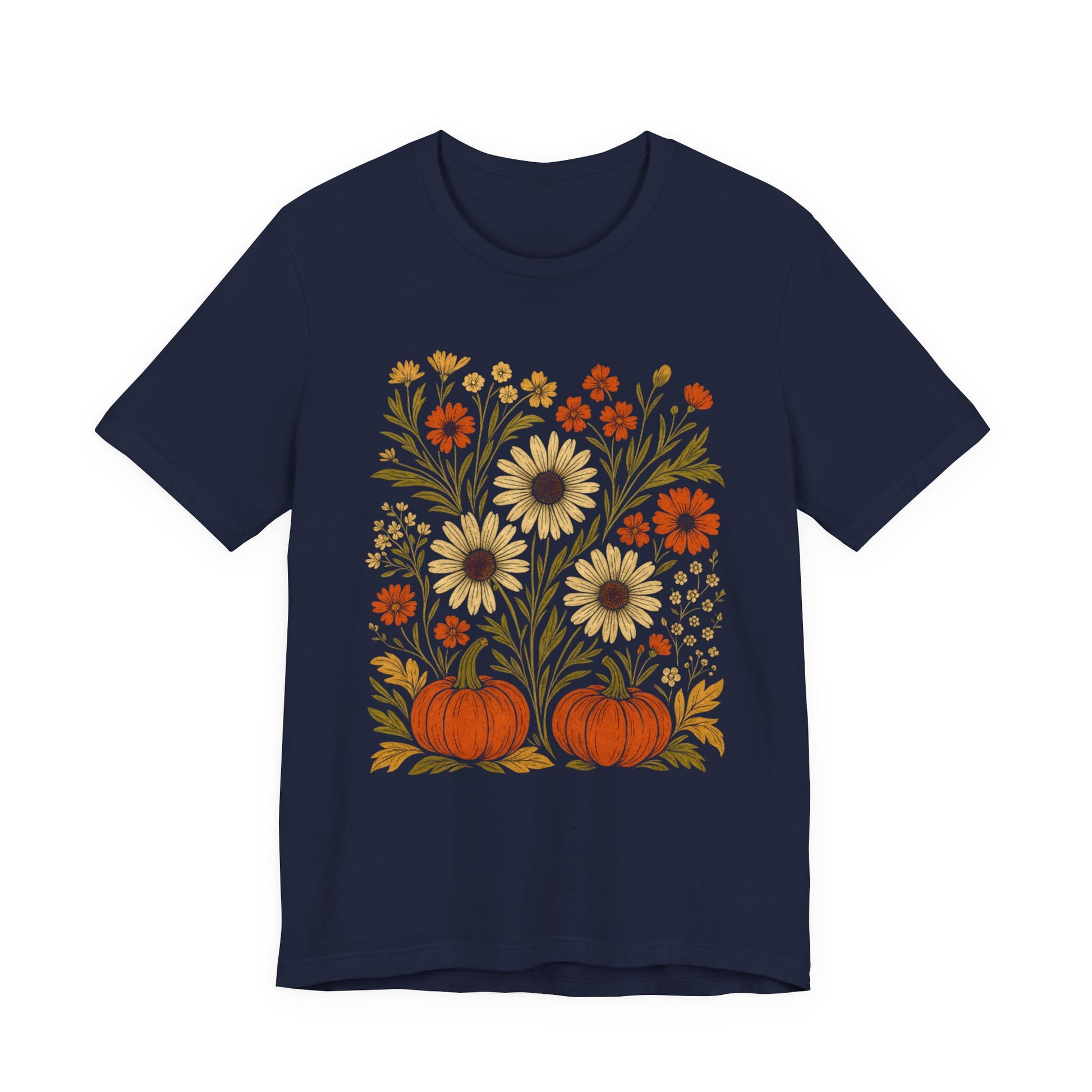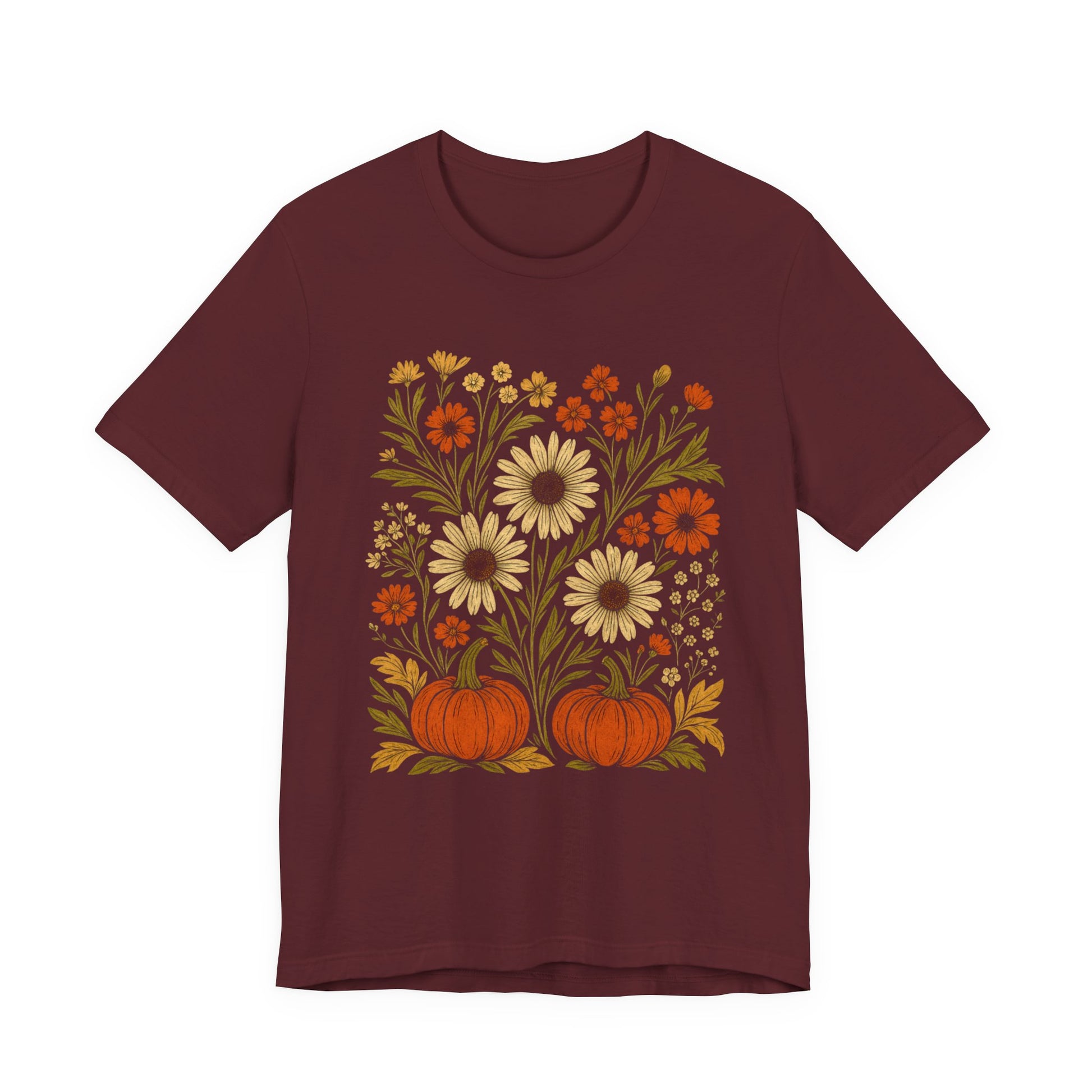 Fall Floral Pumpkin Tee, Autumn T-Shirt, Harvest Celebration Shirt, Thanksgiving Outfit, Nature Lover Gift, Seasonal Apparel