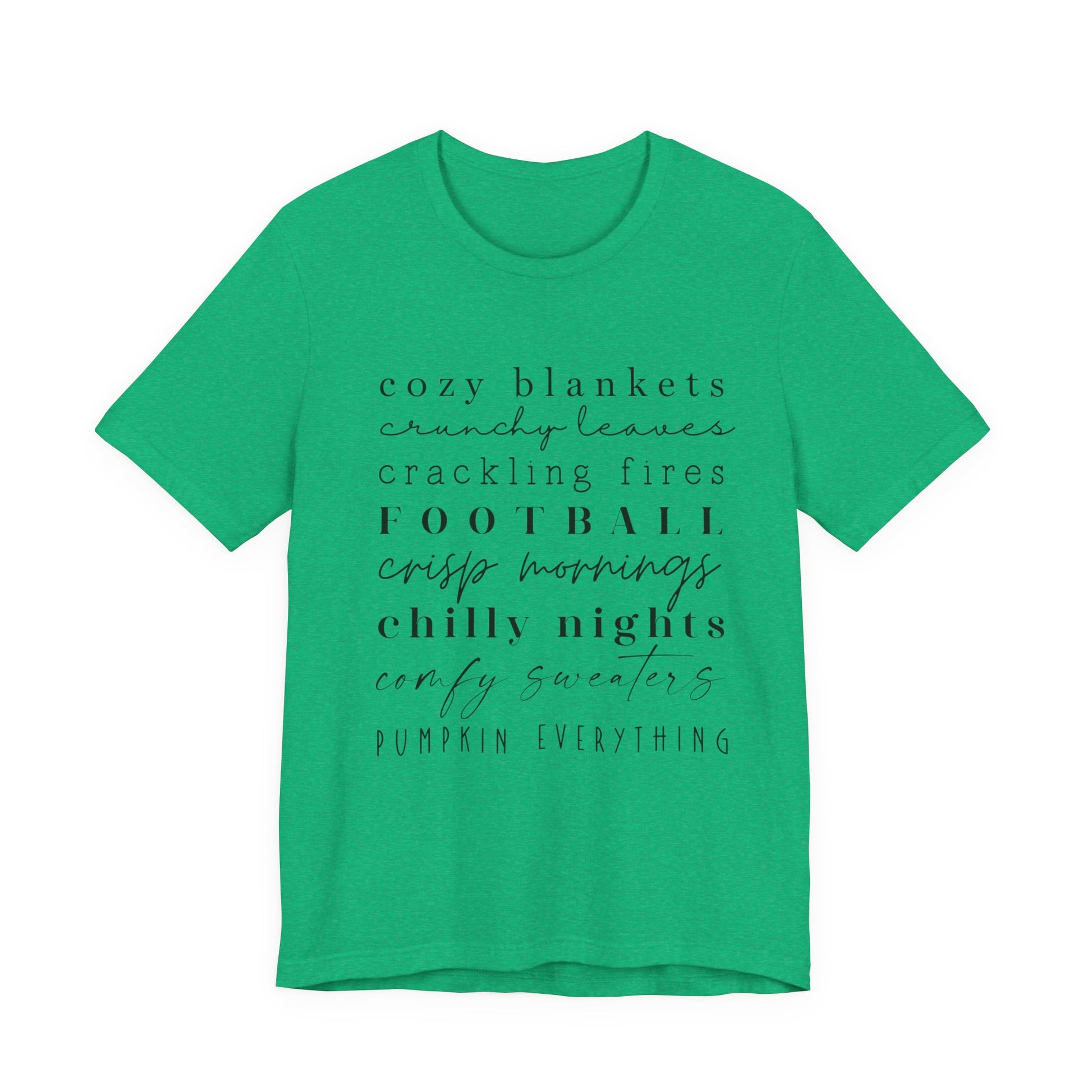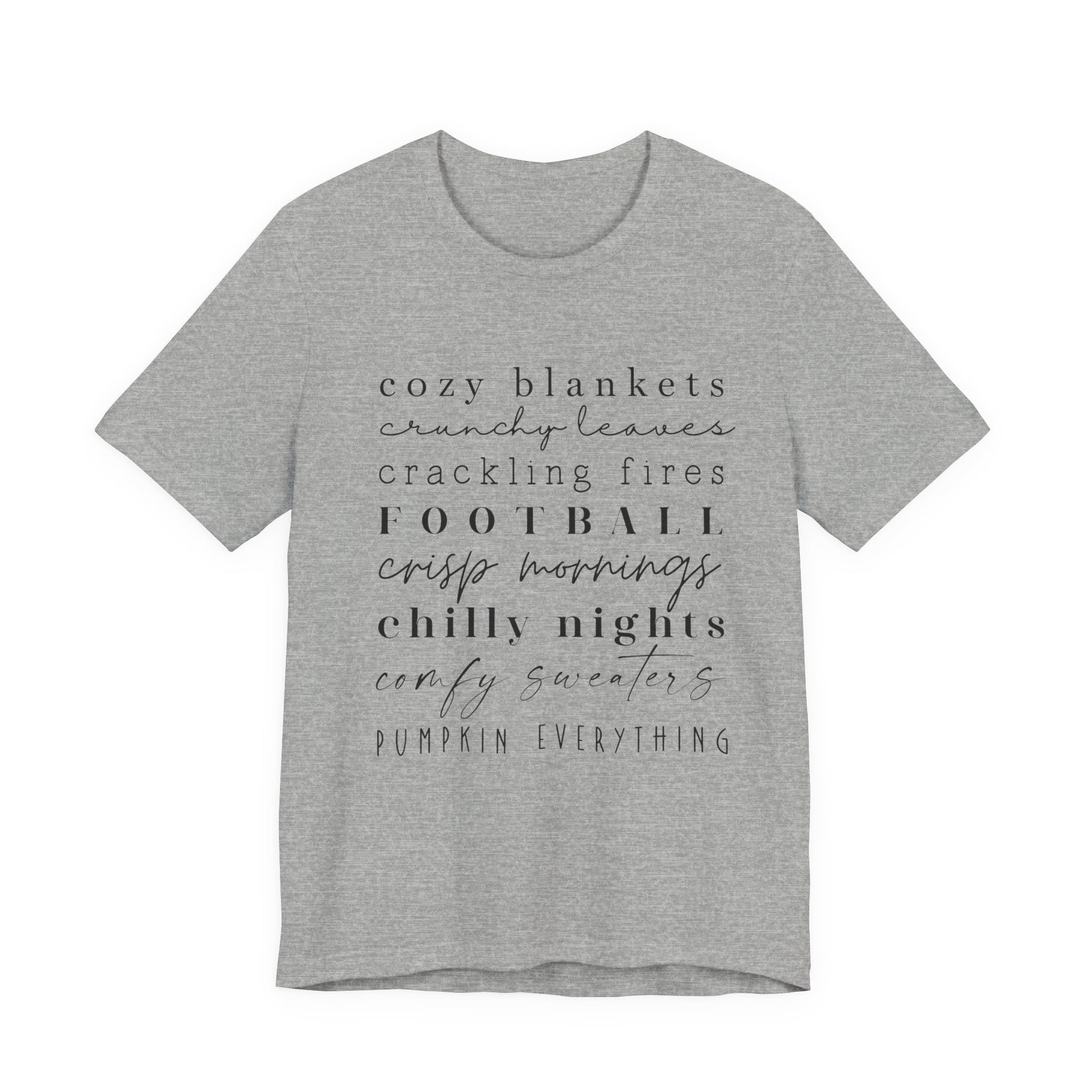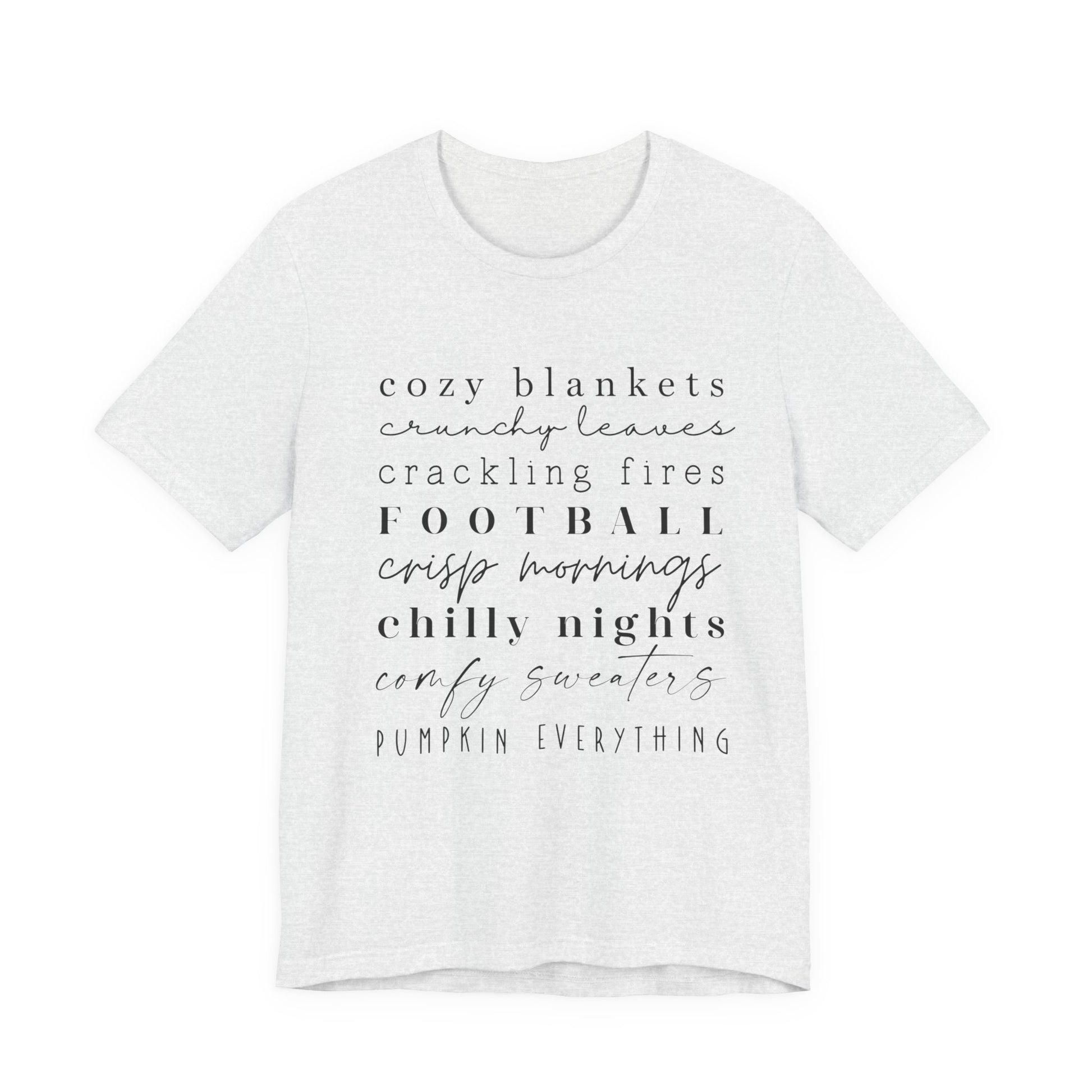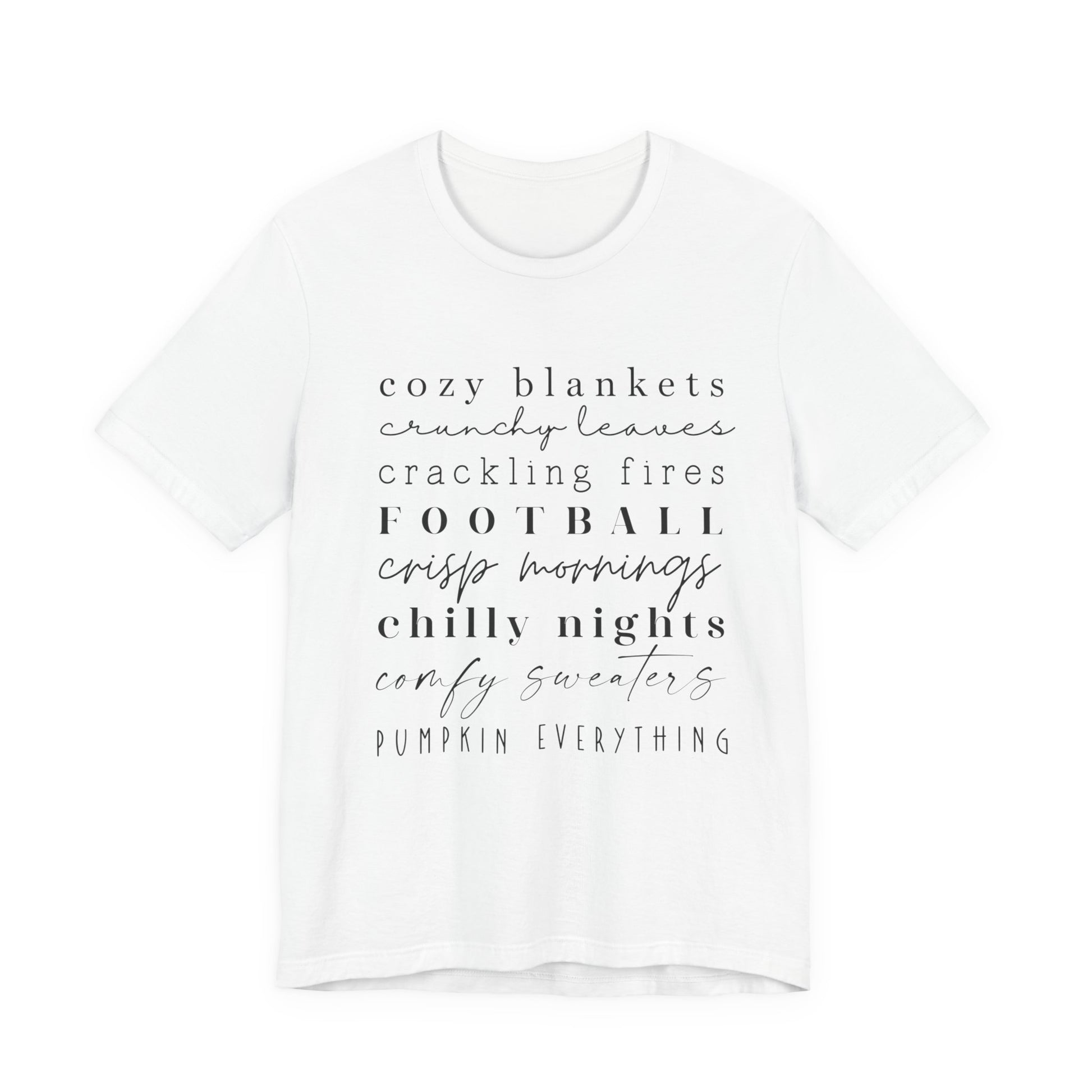 Embrace the cozy vibes of autumn with this Unisex Jersey Short Sleeve Tee. Perfectly designed for comfort and style, this tee features a lightweight, breathable fabric that feels great against the skin. The relaxed fit and classic crew neckline make it an ideal choice for any casual or semi-formal occasion. Whether you're enjoying a chilly evening by the fire or attending a laid-back gathering with friends, this tee effortlessly blends into your wardrobe. It's a wonderful gift for anyone who loves fall aesthetics, football games, or simply cherishes cozy, memorable moments. This tee is perfect for Thanksgiving celebrations, Halloween festivities, or just those crisp autumn days that call for comfort.